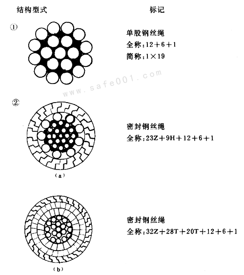 6×19S+I(xiàn)WR 6股每股19芯(西魯式鋼絲繩),中間一股為鋼(絲繩)芯